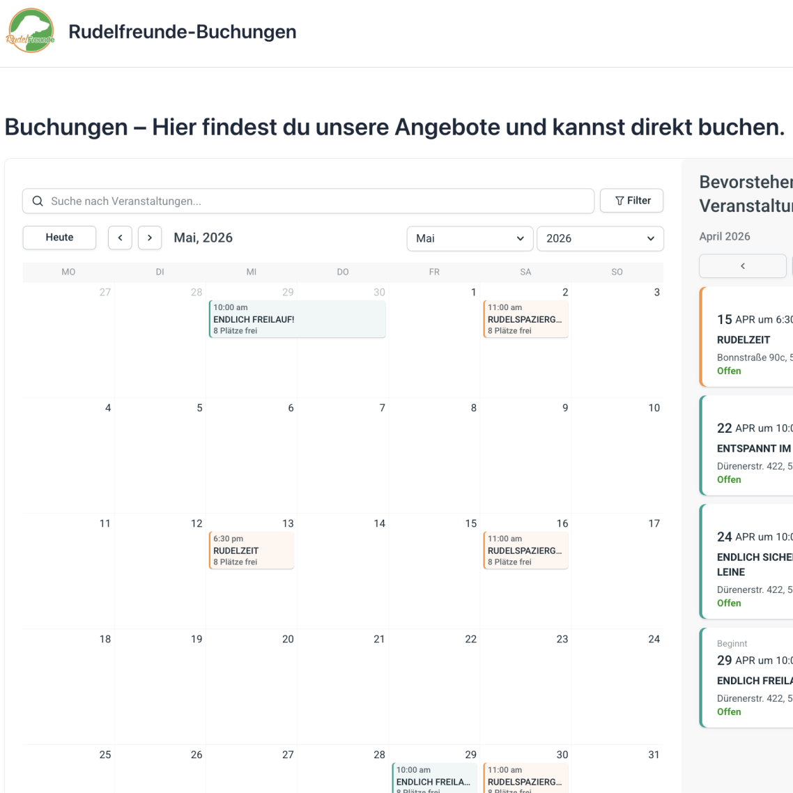 Schau Dich gerne auf unserer Buchungsseite nach aktuellen Terminen um.